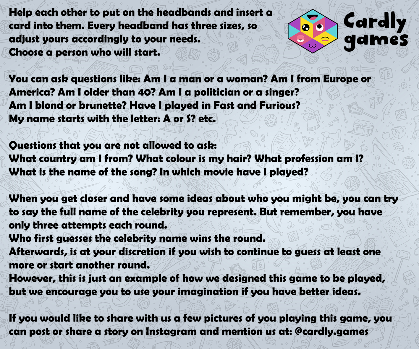 Fiecare jucător trebuie să ghicească personajul de pe bentița lui, prin diferite întrebări și răspunsuri de la restul jucătorilor.